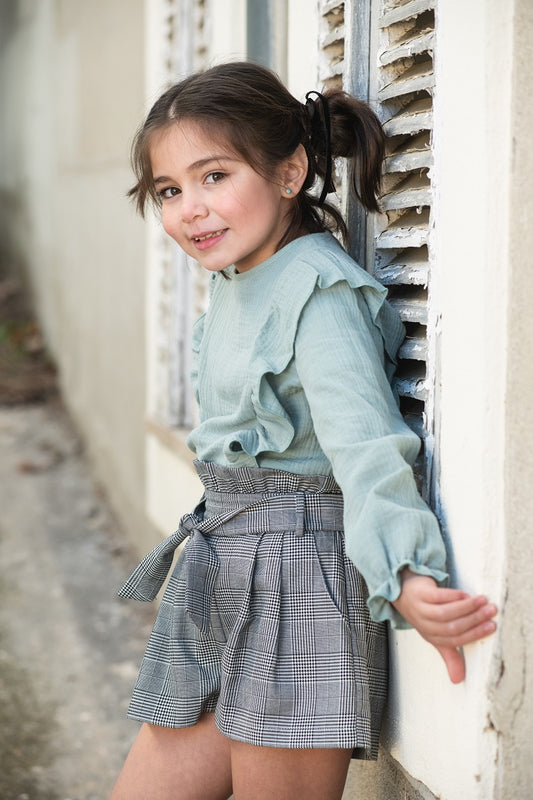 PAN01 Pantalón corto lazada escocés Príncipe de Gales