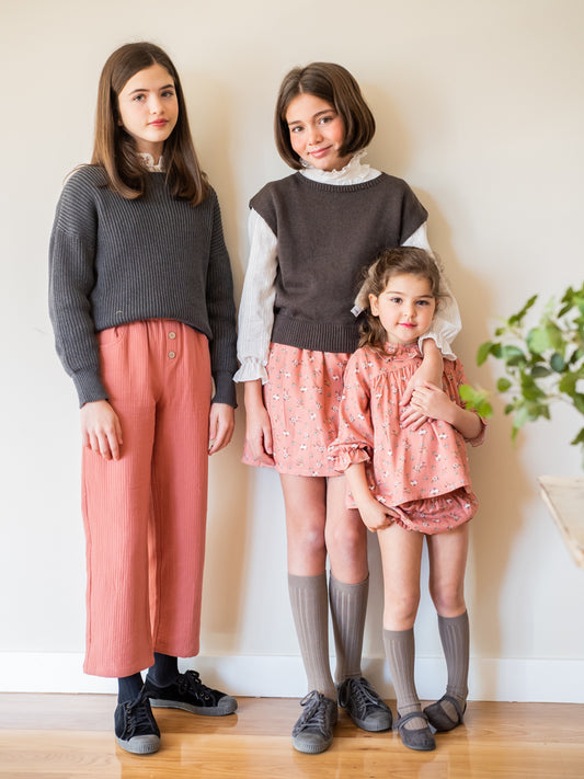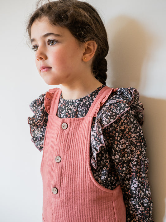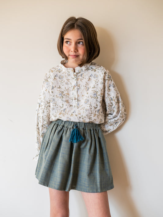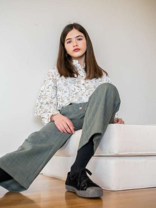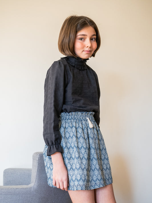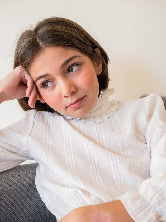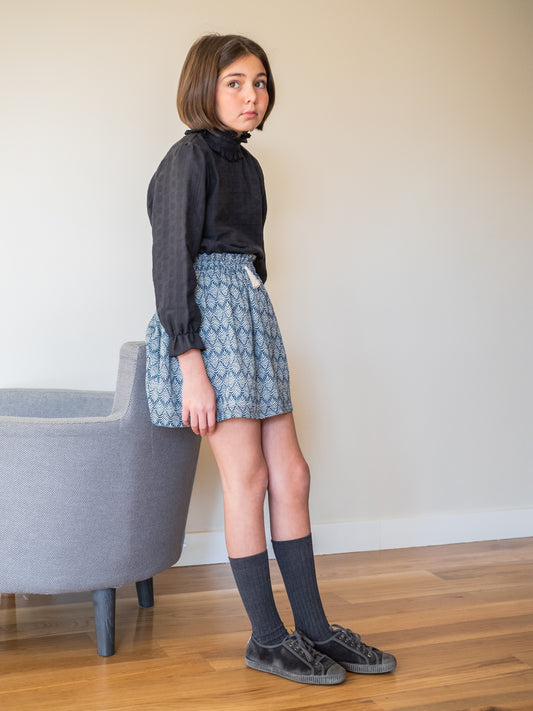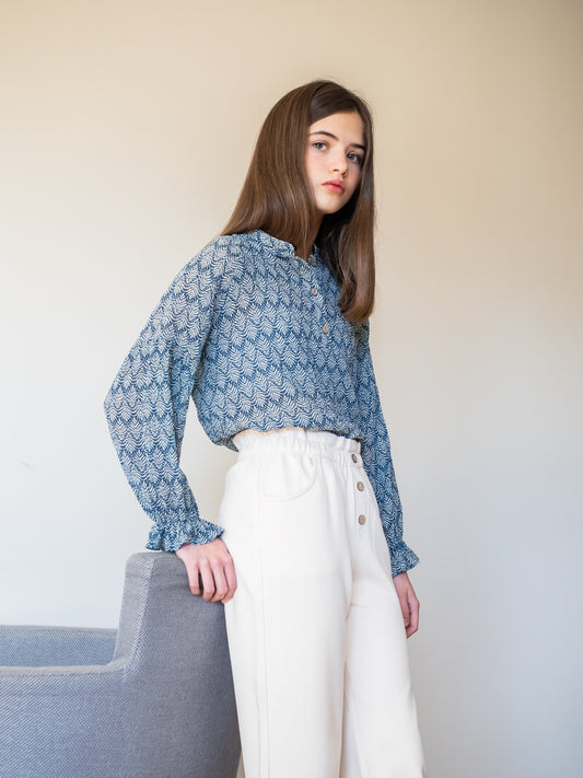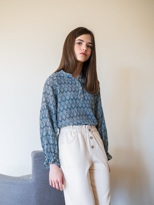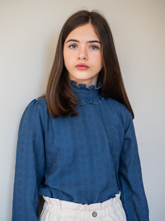 BLU06 Blusa cuello perkins encajes azul petróleo