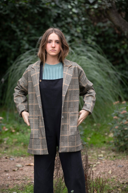 • AB02 Abrigo oversize cuadros tonos azul/negro