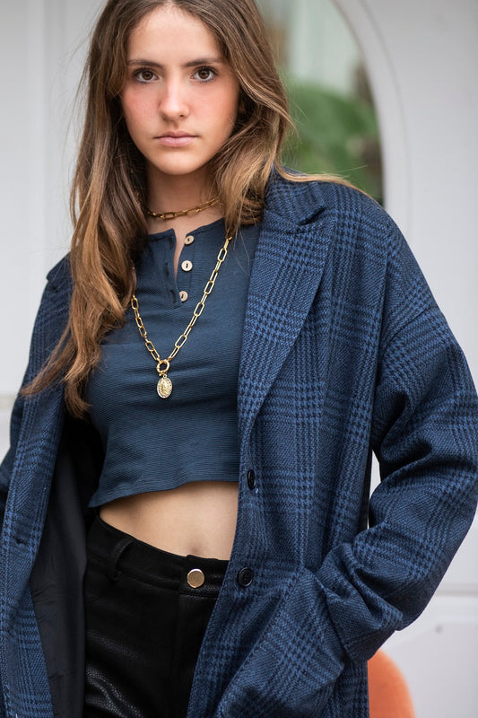 AB02 Abrigo oversize cuadros tonos azul/negro