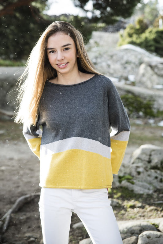 PUNT10 Jersey tricolor antracita/gris brillo /mostaza