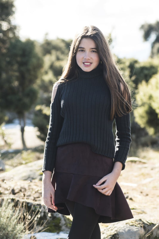 PUNT07 Jersey cuello vuelto hombros mostaza