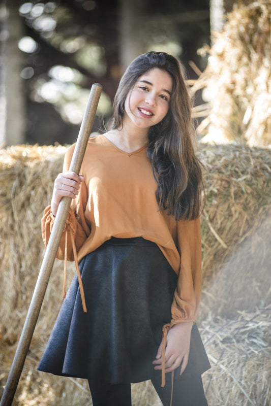 BLUT02 Blusa ranglan cuello pico calabaza