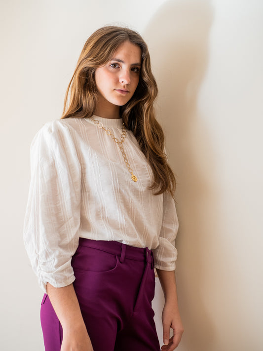 BLUT04 Blusa cuello perkins encaje blanca