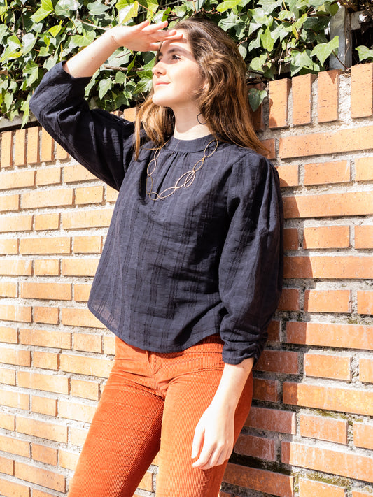 BLUT05 Blusa cuello perkins encajes carbón