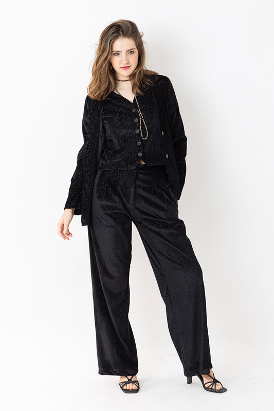 PANT09 Pantalón terciopelo brillo negro