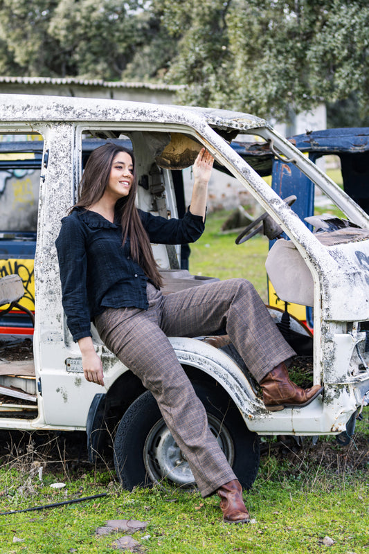 PANT01 Pantalón cuadro marrón