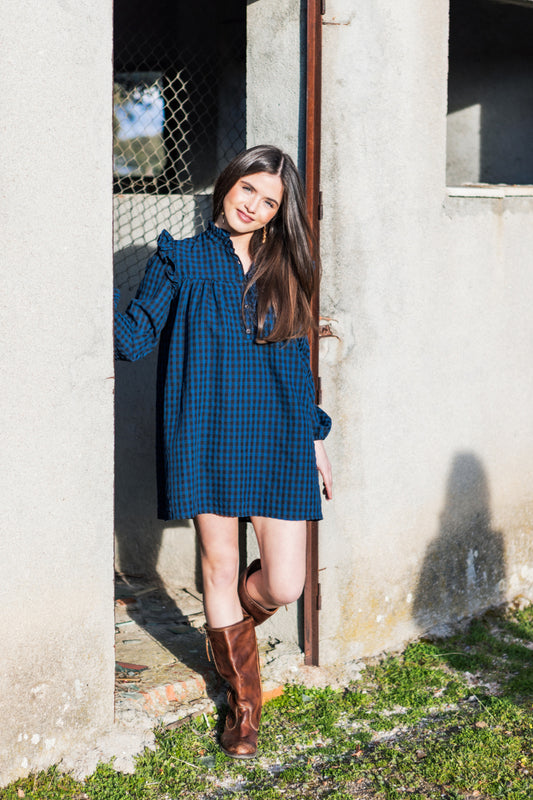 VEST05 Vestido boho vichy azul