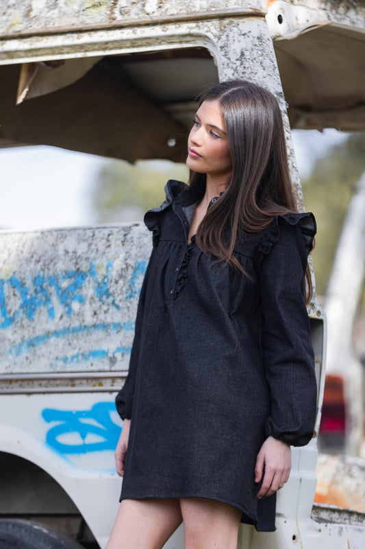 VEST06 Vestido boho denim negro