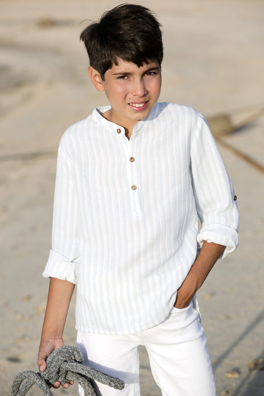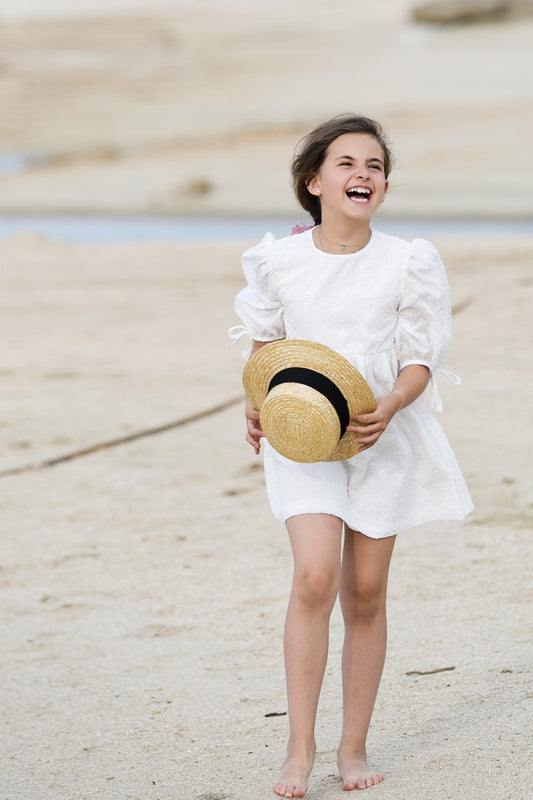 VES05 Vestido manga farol plumeti bordado hojas blanco