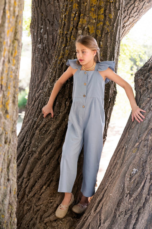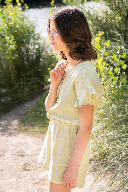 FAL03 Falda abotonada bolsillos estrellitas amarilla