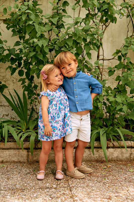 BLU05 Blusa manga mariposa bambula azul