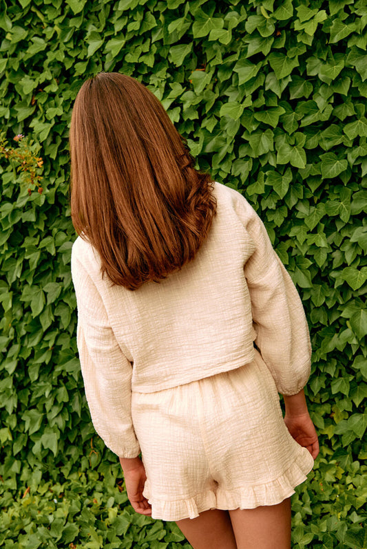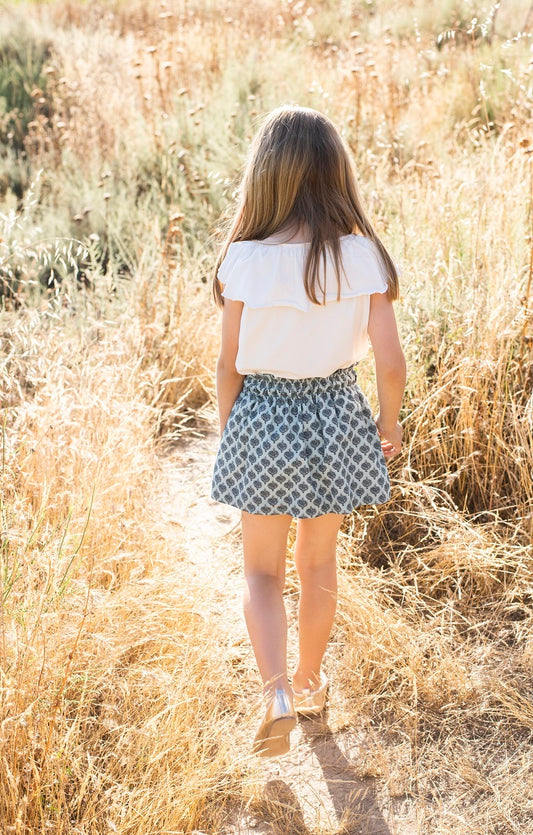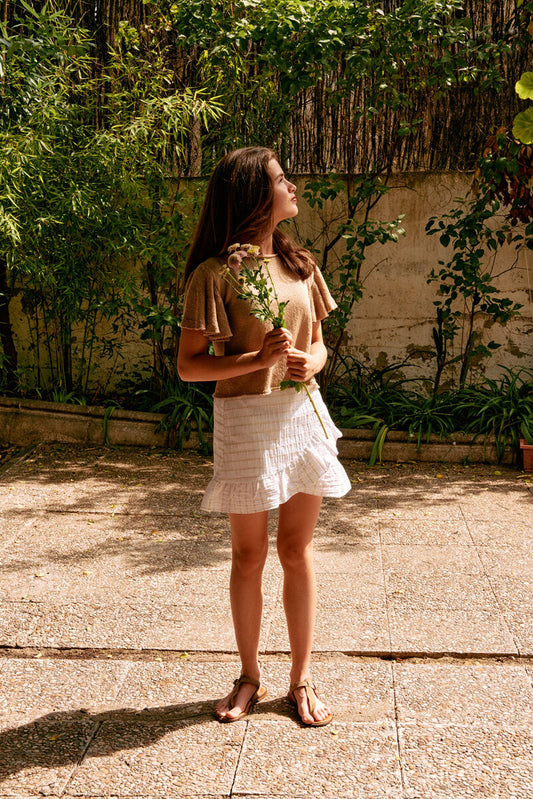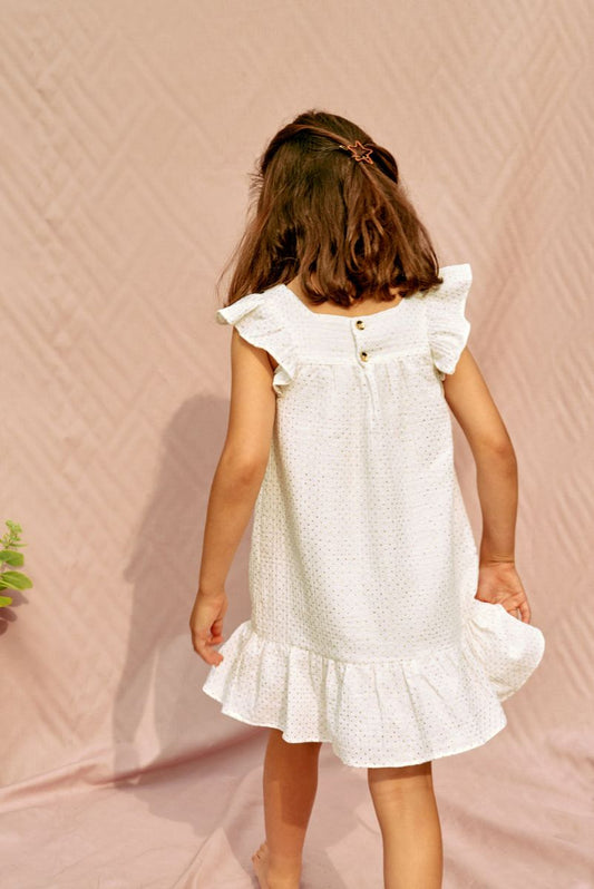 VES07 Vestido escote cuadrado blanco topitos dorados