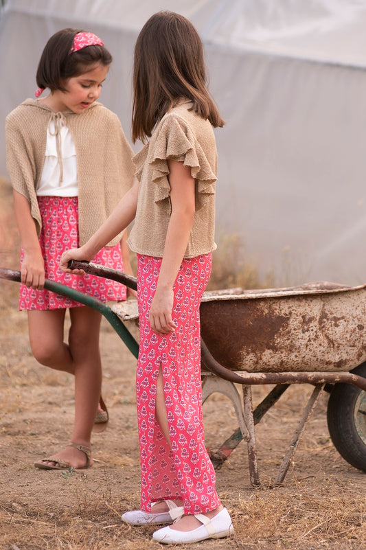 PAN03 Pantalón largo fluido aberturas flores sandía