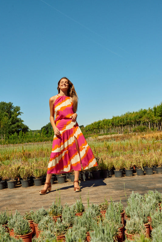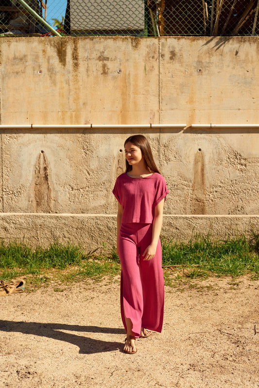 PANT05 Pantalón largo aberturas satén rosa viejo