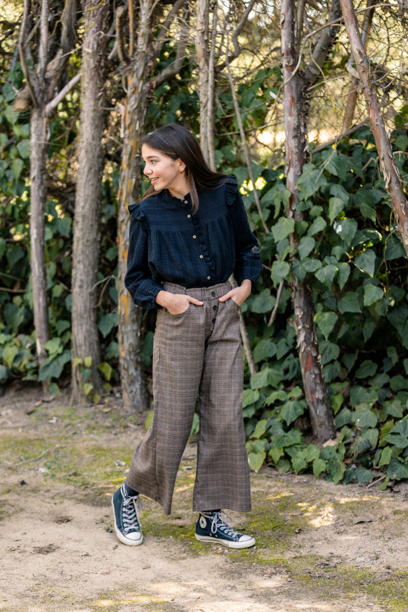 Blusa con un corte ideal para las más mayorcitas. En negro será un imprescindible. Nos encanta como queda con nuestro pantalón cuadro marrón, y nuestro punto carbón.