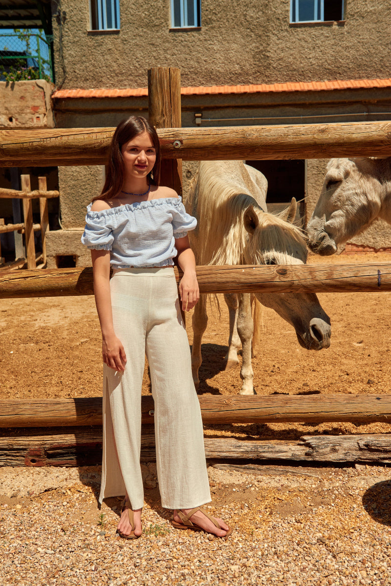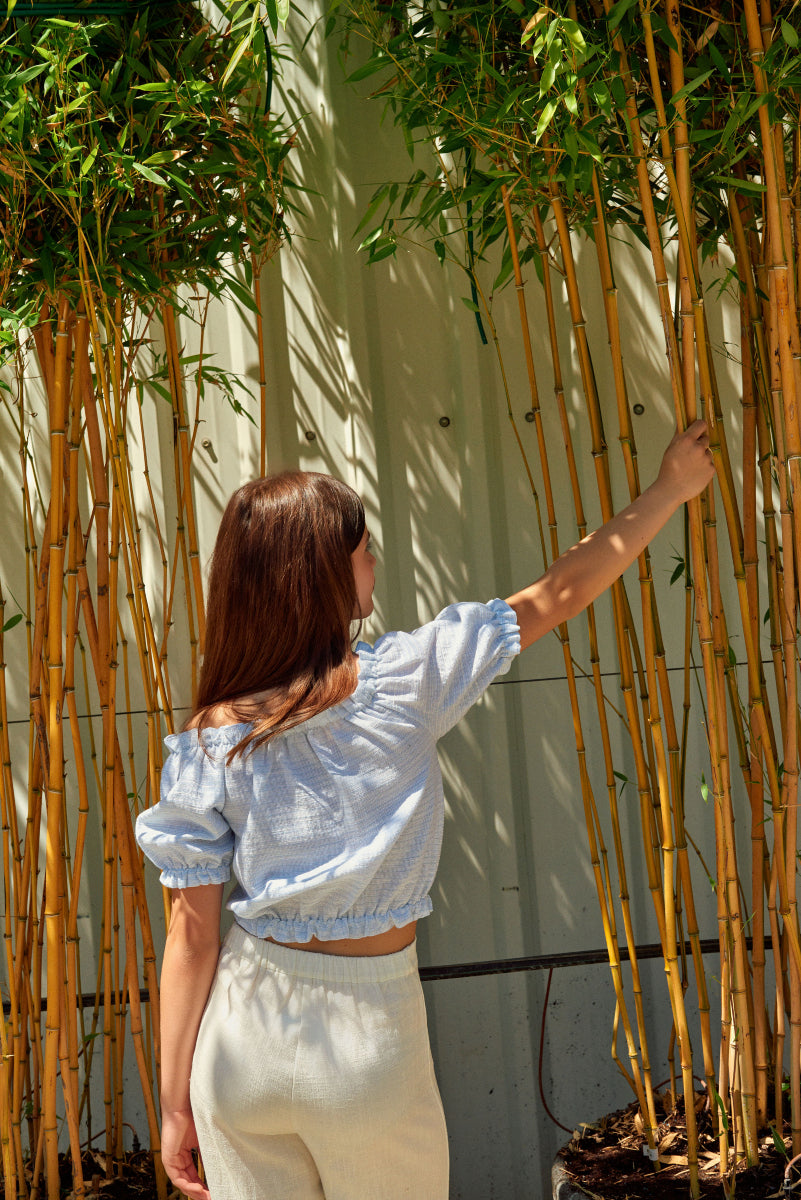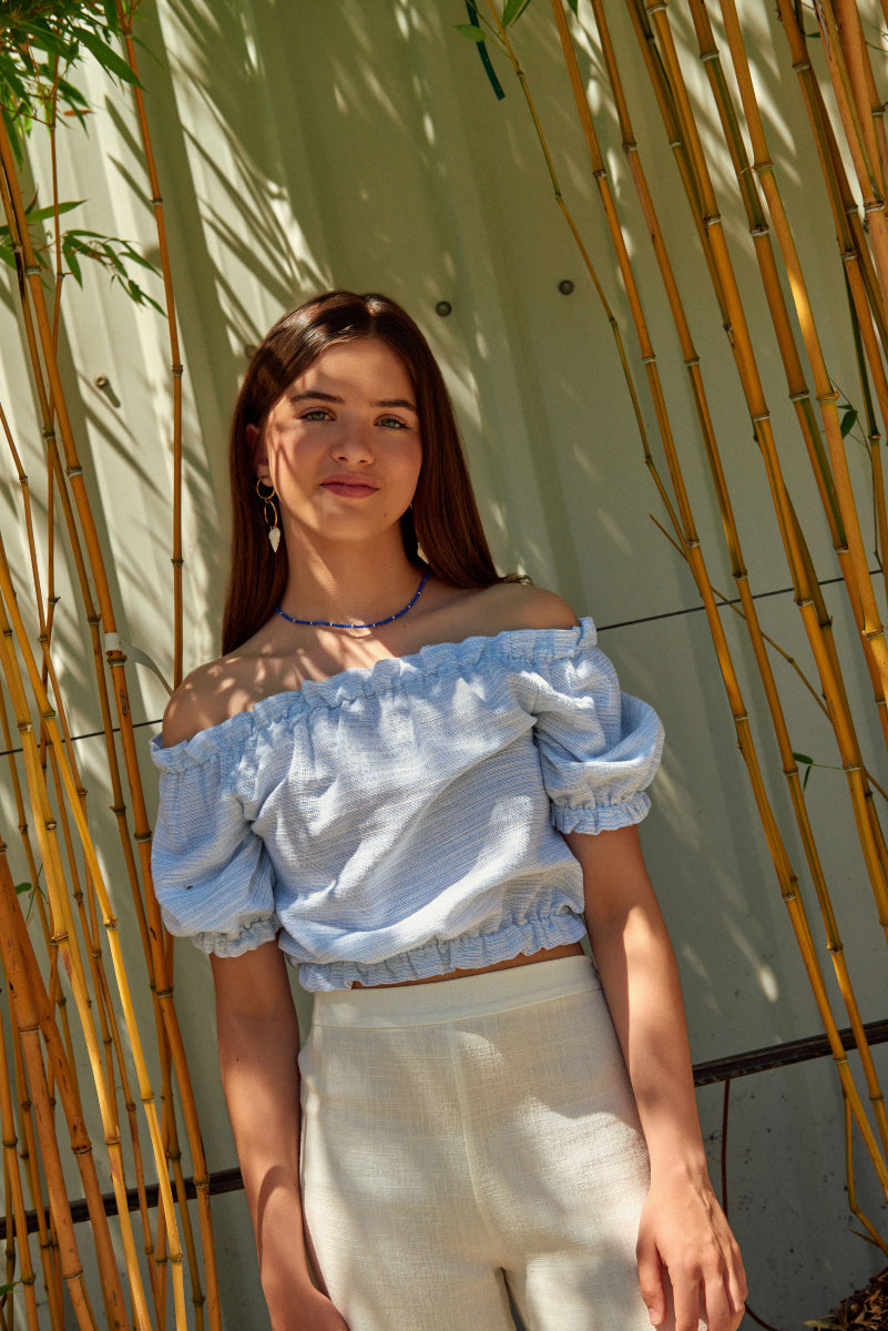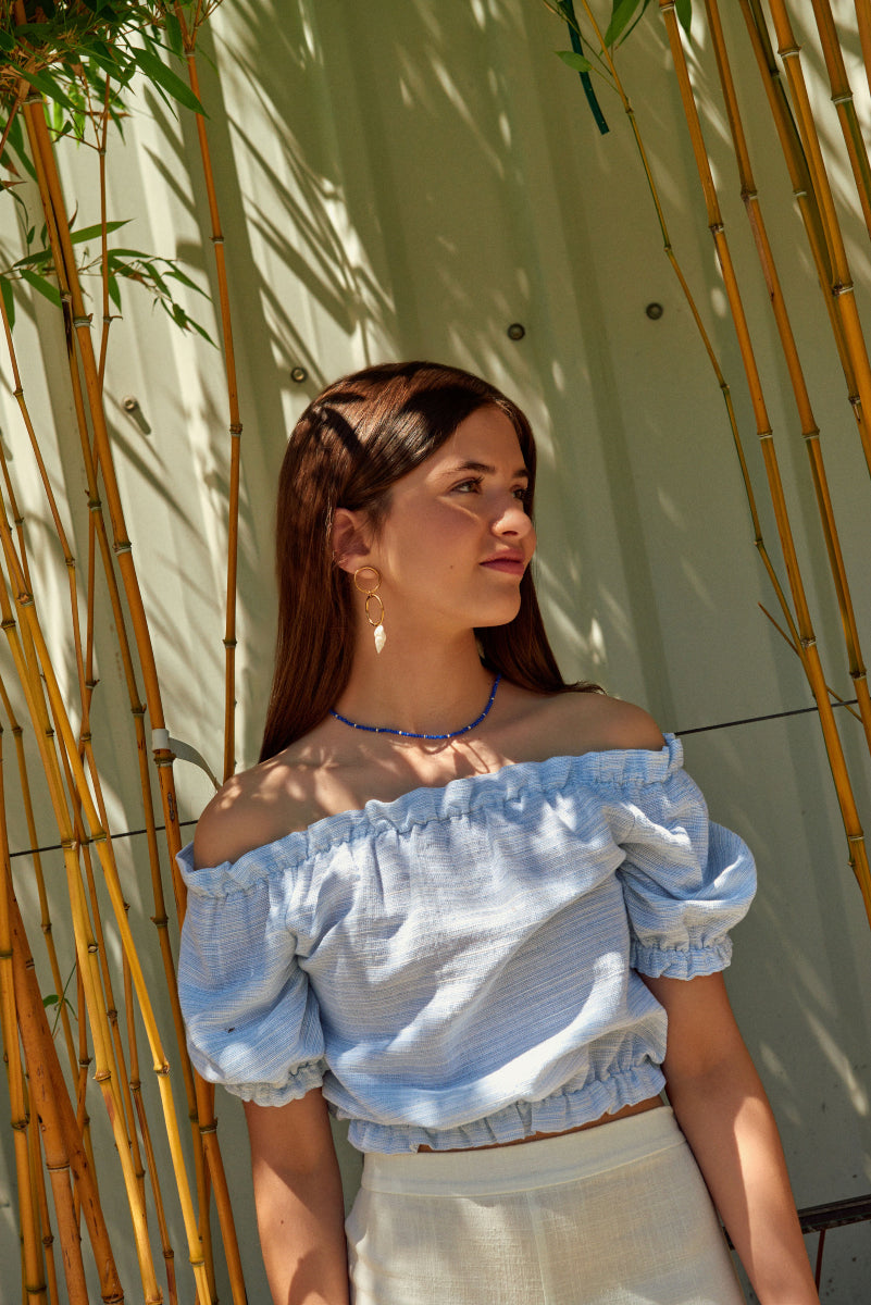 Se pueden bajar las mangas y llevarla con los hombros descubiertos. Una blusa comodín para combinar con cualquier parte de abajo.