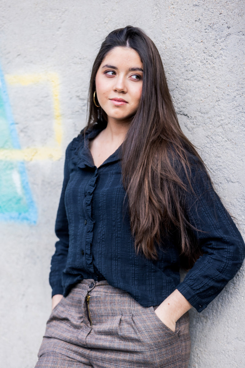 Blusa cuello caja. Manga larga con puño. Apertura frontal con botones. Detalle de volante en cuello y tapeta delantera.