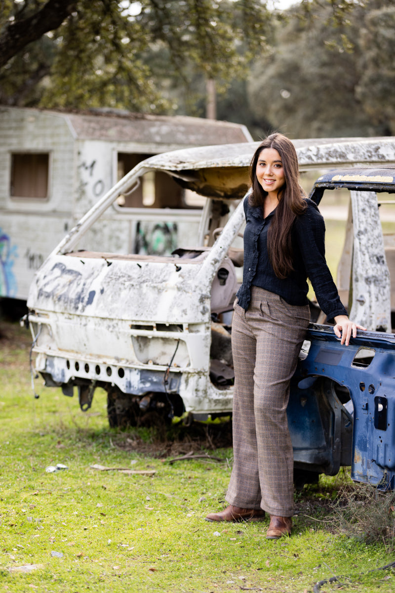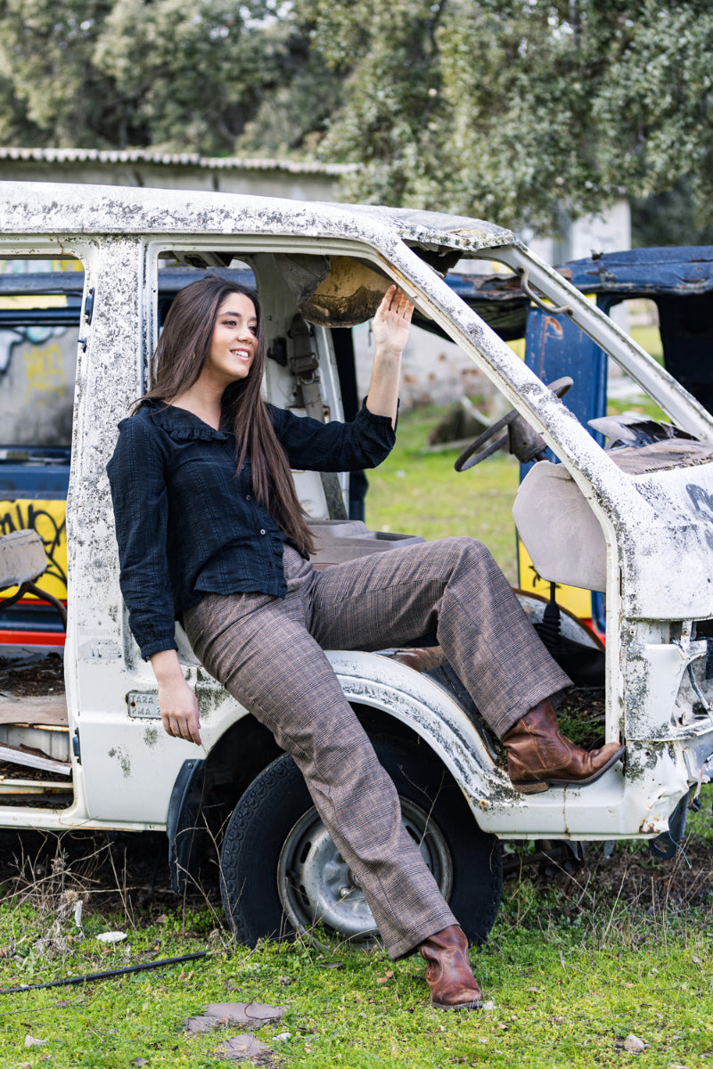 Llévala con nuestro pantalón cuadro marrón y la falda corta hojas. Póntela también con tus vaqueros preferidos. El tono negro es un imprescindible.
