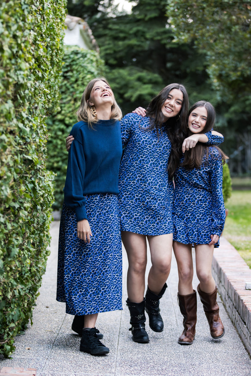 Tejido 100% viscosa de un estampado print muy favorecedor en tonos azules.