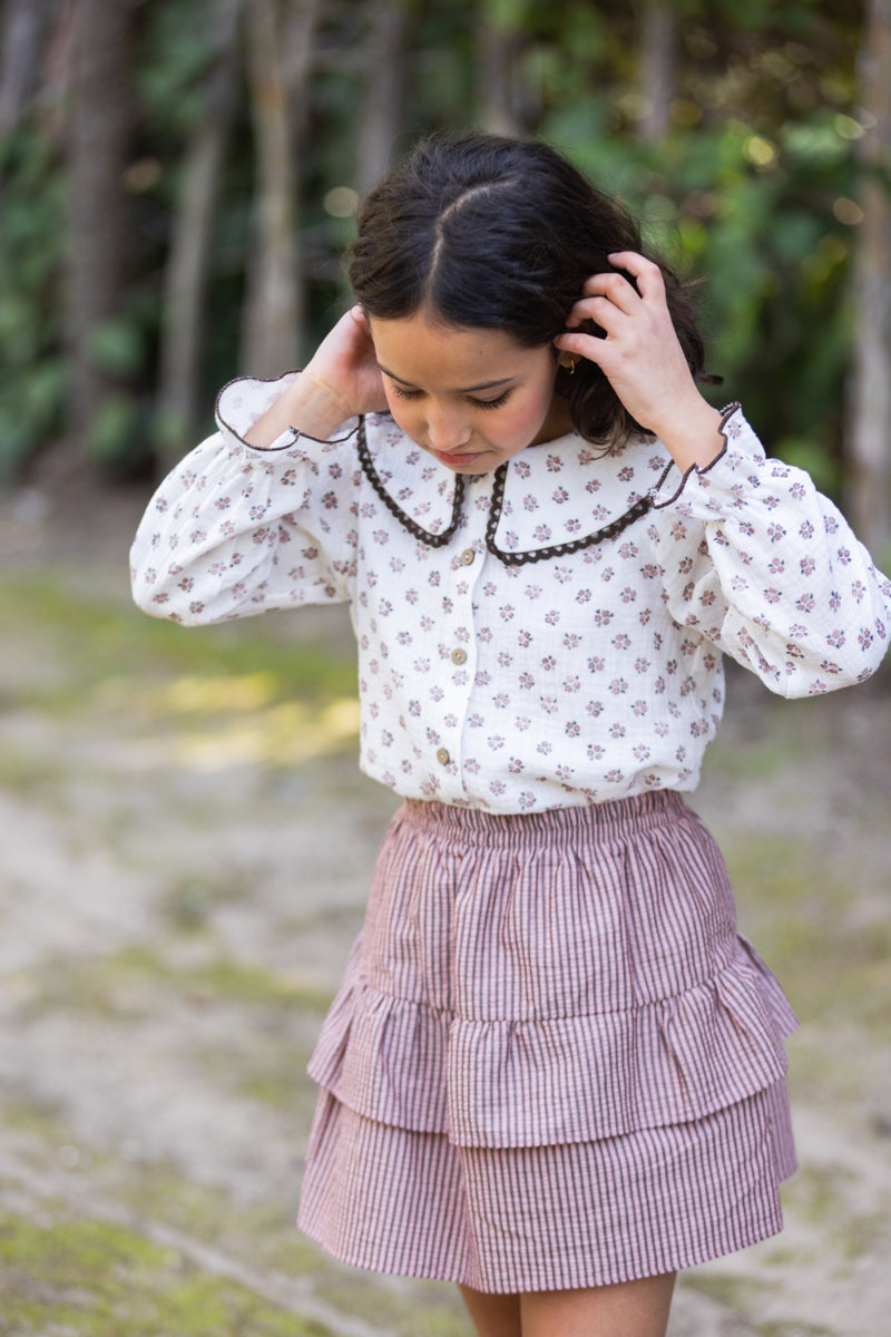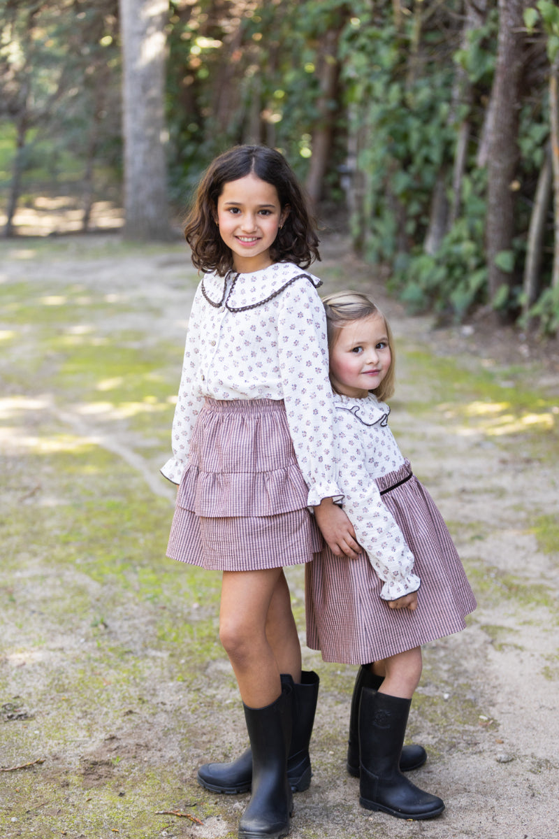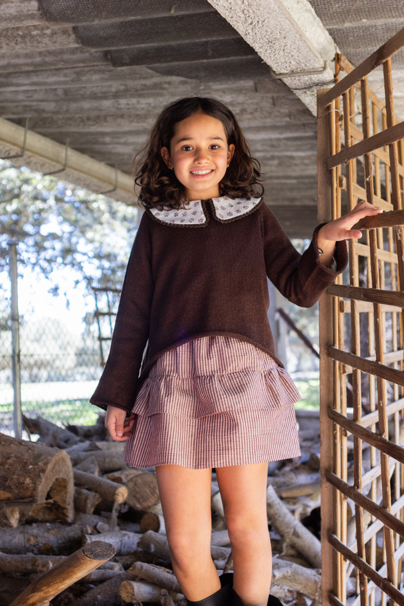 FAL02 Falda volantes listas chocolate/rosa