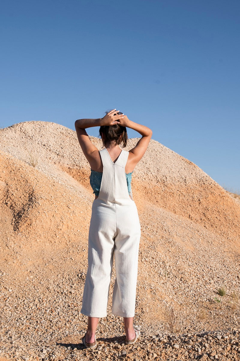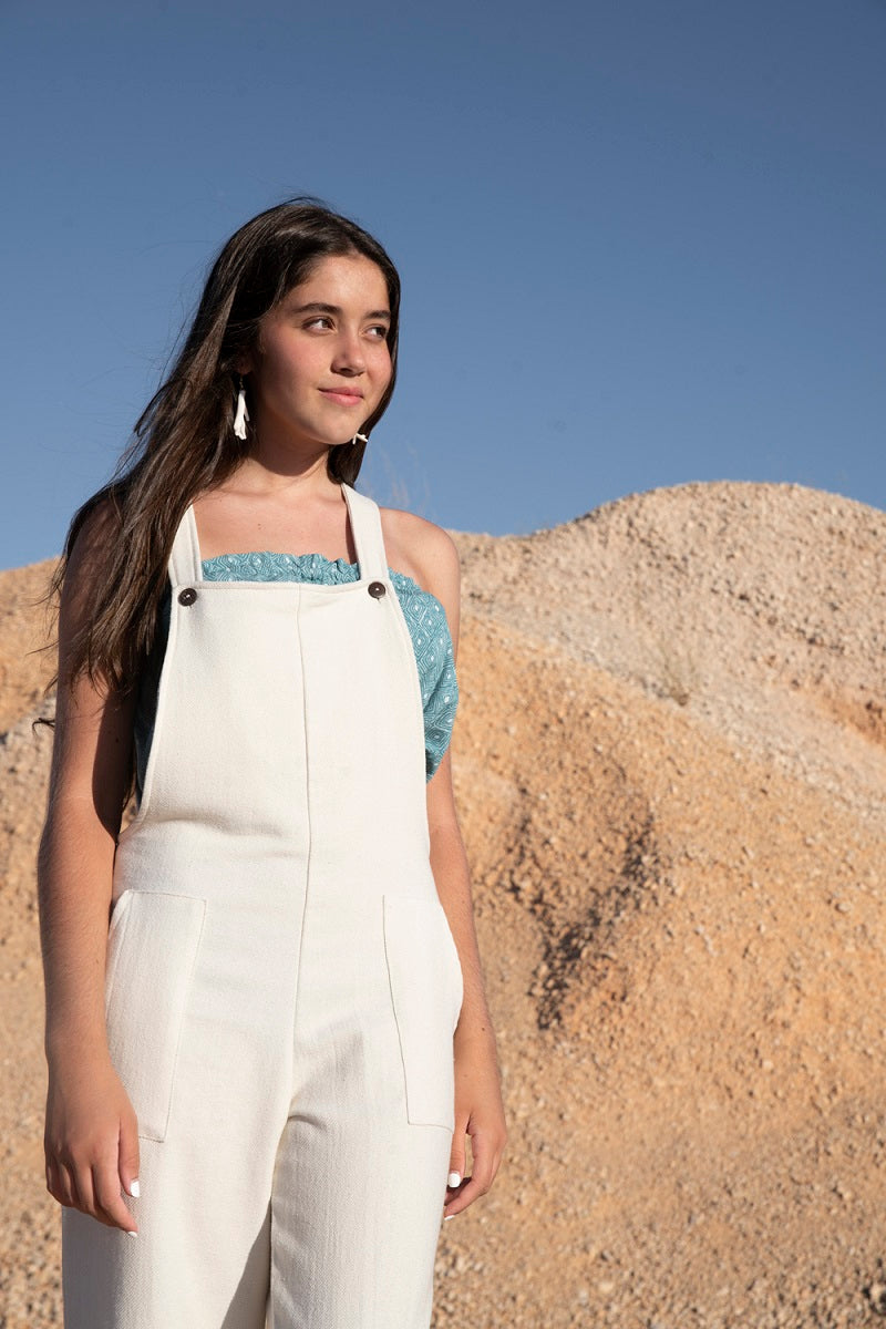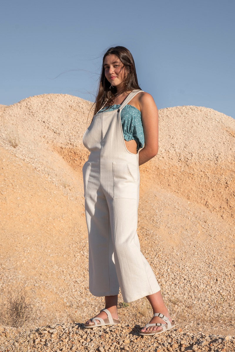 Mono oversize de tirantes. Botones de coco. Con bolsillos grandes en delantero.