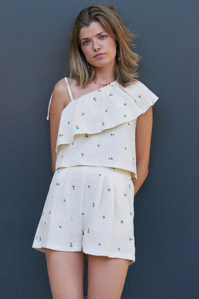 PAN08 Pantalón corto bordado margaritas