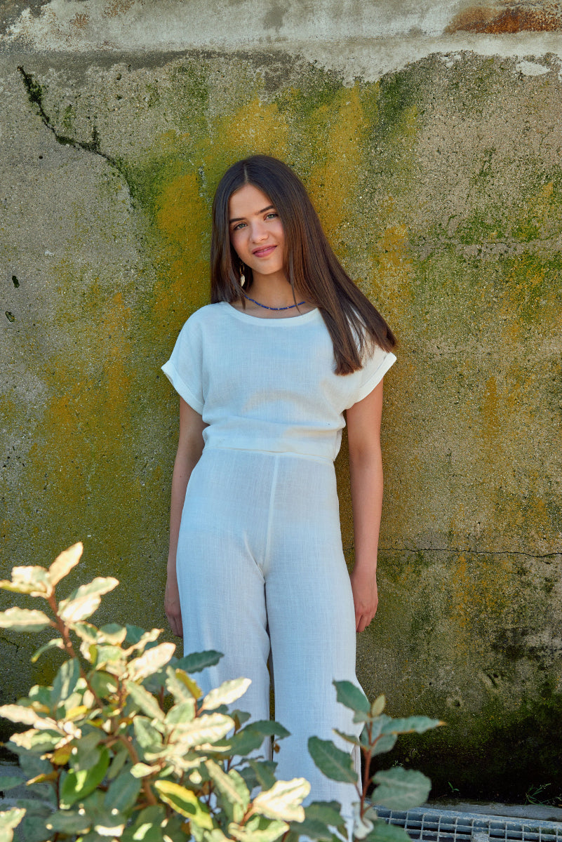 Un pantalón fondo de armario. Para un total look combínalo con nuestro top del mismo tejido. También ideal con cualquiera de nuestras blusas.