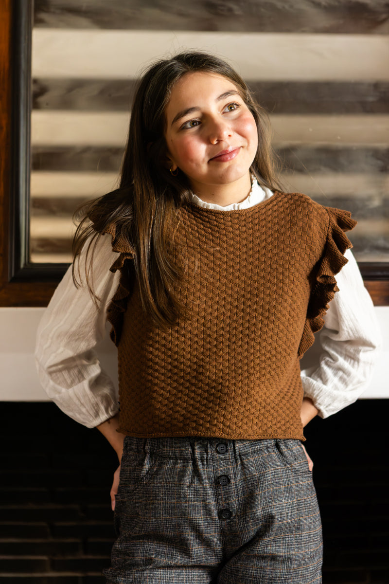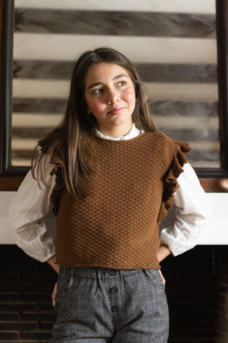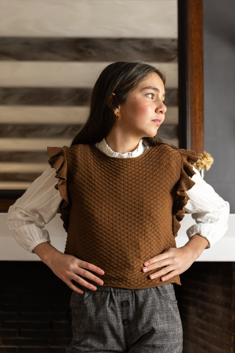 Sus volantes, realizados en un punto más fino, para poder encima la prenda de abrigo sin problema, confieren al outfit un aire estiloso.