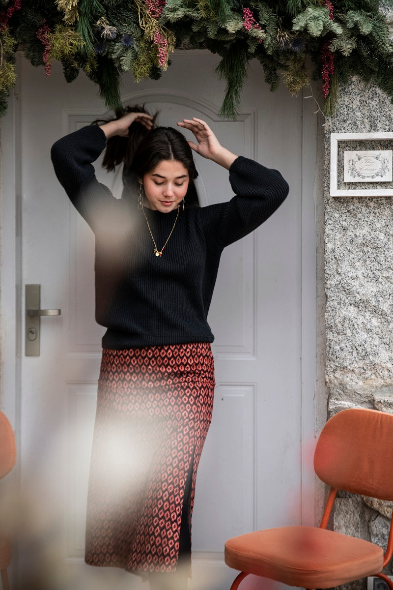 Jersey oversize escote caja. Manga larga ligeramente abullonada.