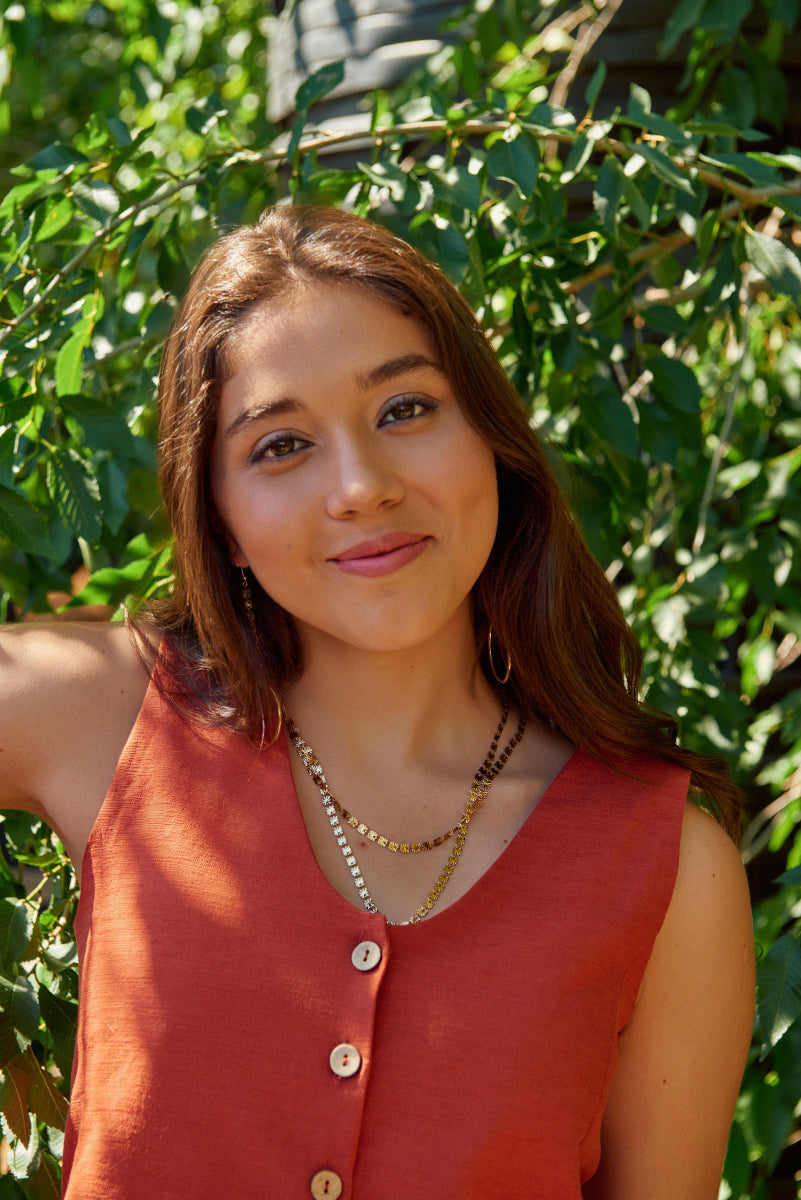 Combínalo con nuestro pantalón del mismo tejido para un total look o nuestras prendas de estampado hojas teja.